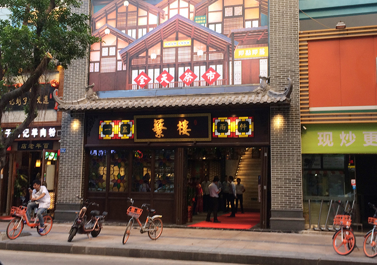 ,比如蘩樓的招牌是一盅兩件、全天茶市等。寶粵樓的招牌上打的是百年傳承、老廣味道。
