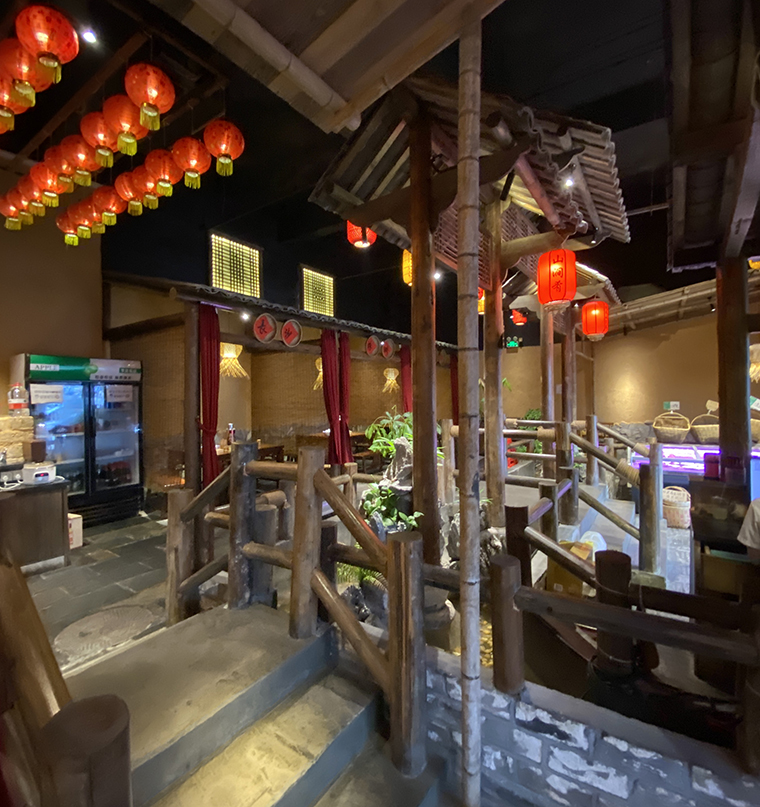 4、燈具款式及布置。燈具外觀款式的設(shè)計是餐飲空間設(shè)計的一部分,是空間陳設(shè)藝術(shù)的重要表現(xiàn)形式。不同的餐飲品類對燈具款式及材質(zhì)都有特殊的要求。除了常規(guī)的玻璃、金屬、塑膠等工業(yè)材料外,還有一些自然的原生材料,如竹、藤、線、紙等。在品深餐飲全案策劃設(shè)計中,燈具的款式和材料都是統(tǒng)一在全案品牌策劃設(shè)計的系統(tǒng)中,比如我們設(shè)計的悅得閑廣式點心茶樓,專門原創(chuàng)設(shè)計的吊燈模仿鳥籠造型就是為了傳遞廣州老茶客提籠遛鳥的飲早茶的悠閑幸福生活,和整個品牌文化高度契合。