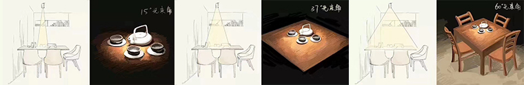 5、材質(zhì)、光束角度、光源色彩等靈活應用。材質(zhì)不同,其中透明度、反射率、折射率、發(fā)光度等都不同。不同方向的燈光照射在同一物體上,表現(xiàn)出來的光澤和肌理也是不一樣,靈活駕馭光線的特點,可以讓餐廳墻面或者物體及軟裝陳設(shè)品產(chǎn)生豐富的光暈和肌理的變化。同一個光源,扣上不同型號的燈杯后,它可以產(chǎn)生大小不一的光斑,如果我們從燈體發(fā)散一條射線到達光斑邊緣,線與燈之間形成的角度就是光束角。相同功率的燈杯,光束角越大,中心光強越小,發(fā)散出的光斑越柔和;相反,光束角越小,中心光強越大,發(fā)散出的光斑越生硬。不同光束角打在墻上的光斑大小是不一樣的,一般20度以下的叫窄光束角,20~40度叫中光束角,40度以上叫寬光束角。在品深餐飲空間設(shè)計中,一般中餐廳的照明使用的光速角在37度,用光線可以覆蓋整個餐桌;而咖啡館喜歡用15度的光速角,光源聚焦在咖啡杯。