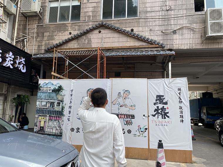 這是品牌設計和空間裝飾需要用自己的語言來講述的品牌故事。于是空間裝飾中用了日本江戶時代京都古建筑的元素,江戶時代的國花“椿花”,江戶時期京都地道燒鳥的選料與料理技法,把