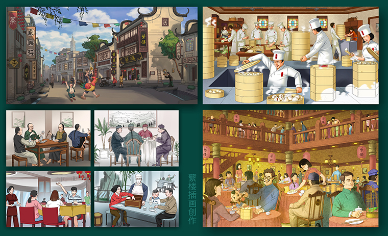 根據(jù)茶樓主廚的描述,我們創(chuàng)作還原了蘩樓當(dāng)年的西關(guān)同興街蘩樓的盛況,讓現(xiàn)代人透過(guò)影像再次了解蘩樓是怎么來(lái)的,當(dāng)年是什么狀況。