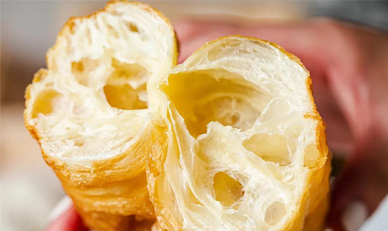 絲瓜囊狀”橫切面。而蘩樓的油條比其他茶樓的都大,比一個(gè)正常