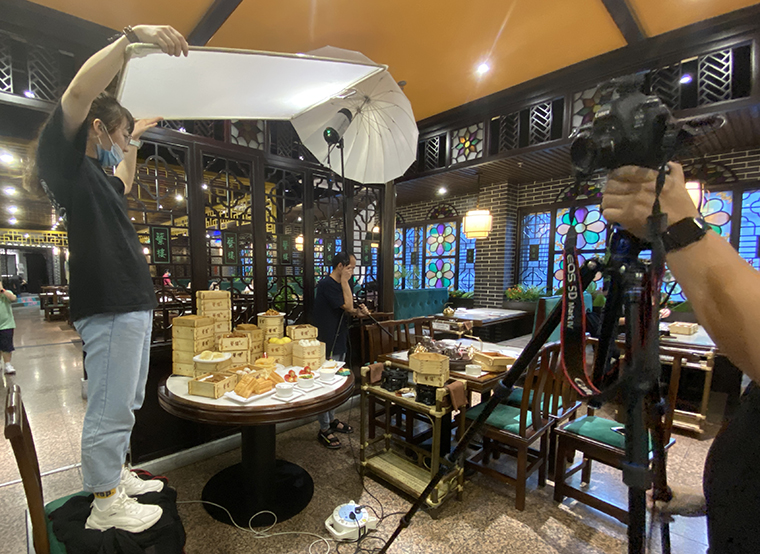 為達(dá)到理想拍攝效果,品深設(shè)計(jì)師再次來(lái)到蘩樓與廚師交流,了解這十款產(chǎn)品的特色,用料,制作工藝等細(xì)節(jié),同時(shí)也購(gòu)買(mǎi)有關(guān)廣式點(diǎn)心制作相關(guān)書(shū)籍進(jìn)行對(duì)比學(xué)習(xí),獲得很多新發(fā)現(xiàn),如:判斷手工炸油條好壞,必須要展示其“