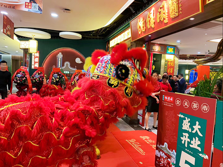 2019年12月25日品深餐飲設計全案服務品牌悅得閑廣式點心茶樓南嶺店正式開業,開業當天,顧客盈門,喜慶熱鬧。