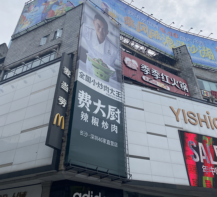 如:費大廚辣椒炒肉:門店最顯著位置展示新鮮五花肉、湖南螺絲椒。菜單上最大版面突出宣傳這道菜。