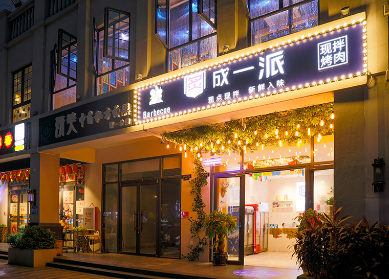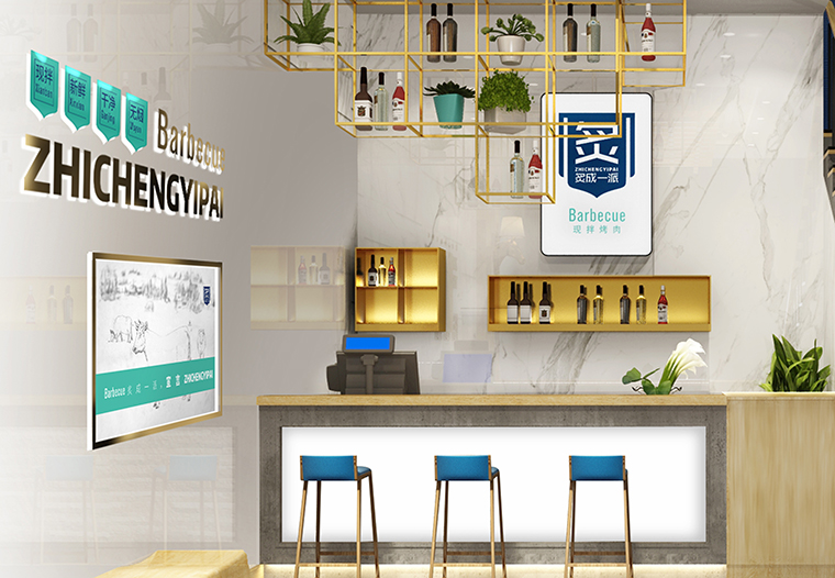 炙成一派是??谝患乙袁F拌現烤為特色的炙子烤肉店。品深餐飲全案策劃設計認為空間裝飾裝修設計是品牌形象整體落地的核心環節。