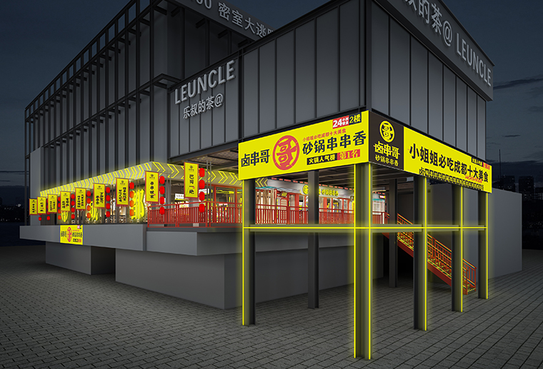 1、鹵串哥砂鍋串串香首次進(jìn)入深圳市場(chǎng),如何通過(guò)空間裝飾裝修設(shè)計(jì)的用餐體驗(yàn)環(huán)境來(lái)表現(xiàn)串串香火鍋與其他火鍋、其他餐飲品類(lèi)不同的市井氣,煙火氣?