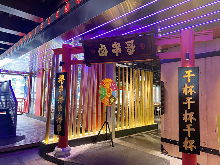 5、在鹵串哥的門(mén)店中,廣告裝飾成了門(mén)店最鮮明的一個(gè)風(fēng)格。各種軟膜燈箱畫(huà)面、軟膜燈箱文案、發(fā)光字、立體字等,手繪墻,加起來(lái)100多項(xiàng)廣告制作,很好地增添了門(mén)店的熱鬧氛圍,傳達(dá)了品牌信息,形成了鹵串哥獨(dú)有的品牌體系,讓其他競(jìng)爭(zhēng)者無(wú)法模仿。
