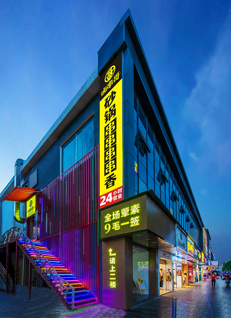 1、將門頭設(shè)計(jì)轉(zhuǎn)變成門面設(shè)計(jì),重點(diǎn)投入,反復(fù)推敲,裝修經(jīng)費(fèi)傾斜,用力猛一些。鹵串哥坪山店的整個(gè)外立面廣告招牌,設(shè)計(jì)非常大氣,覆蓋一整面墻,讓遠(yuǎn)遠(yuǎn)的顧客都能看見,門面上顧客可看見的地方不斷重復(fù)強(qiáng)調(diào)品牌核心訴求,如24小時(shí)營(yíng)業(yè),地道成都砂鍋串串香,小姐姐必吃成都十大美食,9毛一簽等,讓門面成立吸引消費(fèi)者進(jìn)店的大利器。