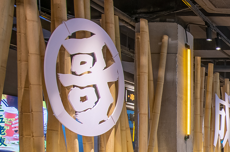 在空間中,我們用鹵串哥品牌強(qiáng)關(guān)聯(lián)的具體一個(gè)竹元素串聯(lián)整個(gè)裝飾,形成品牌專屬識(shí)別記憶,并與串串香的竹簽子,竹椅相呼應(yīng),既有品類特征,又是品牌文化的經(jīng)典傳達(dá)。